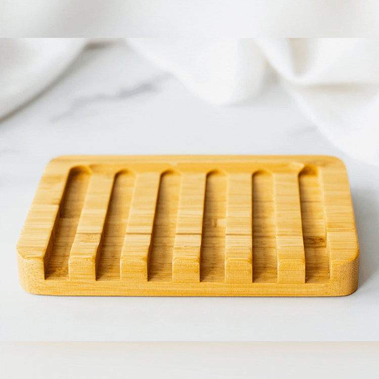 A simple design, yet so incredibly functional. This bamboo soap dish is designed to keep your soap bars elevated and out of water pools to extend their life, while the angled slots allow water to drain away, preventing pools from ever starting. And the little lip on the front helps your soap stay where it should — especially handy for dish soap bars that tend to get quite jostled in use! Plus, the bamboo wood and simple design add a touch of elegance to any sink, tub, or shower.